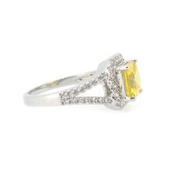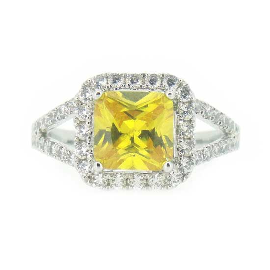 This showcased ring is made of dazzling sterling silver for a glamorous touch. The surface of the ring is encrusted with a yellow-colored stone to catch your attention. This silver ring is sure to create a sparkling and gorgeous effect.