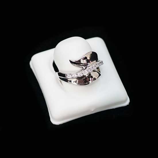 This sterling silver ring features a unique wavy shape. The center of the ring is fitted with white cubic zirconia stones. The well-designed ring goes well with your stylish outfits.