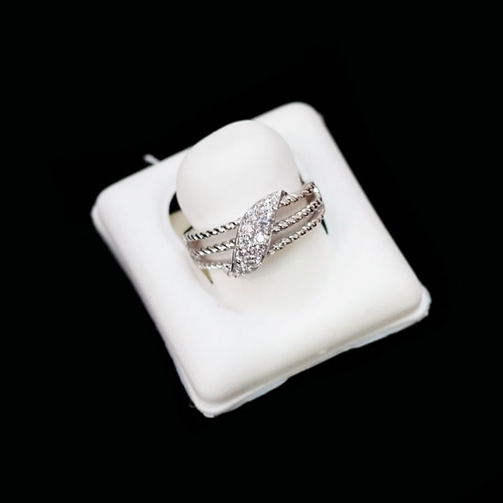 This sterling silver ring is fitted with white cubic zirconia stones. The center of the ring features a stylish curved design. The well-designed ring goes well with your fashionable outfits.