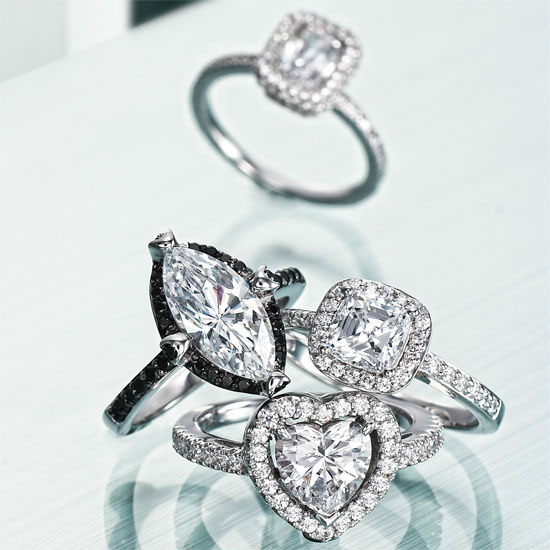 Presented here is a collection of sterling silver rings decorated with skillfully cut CZ. The bold marquise cut stone is surrounded by charming black stones. This beautiful ring is also available in other designs.