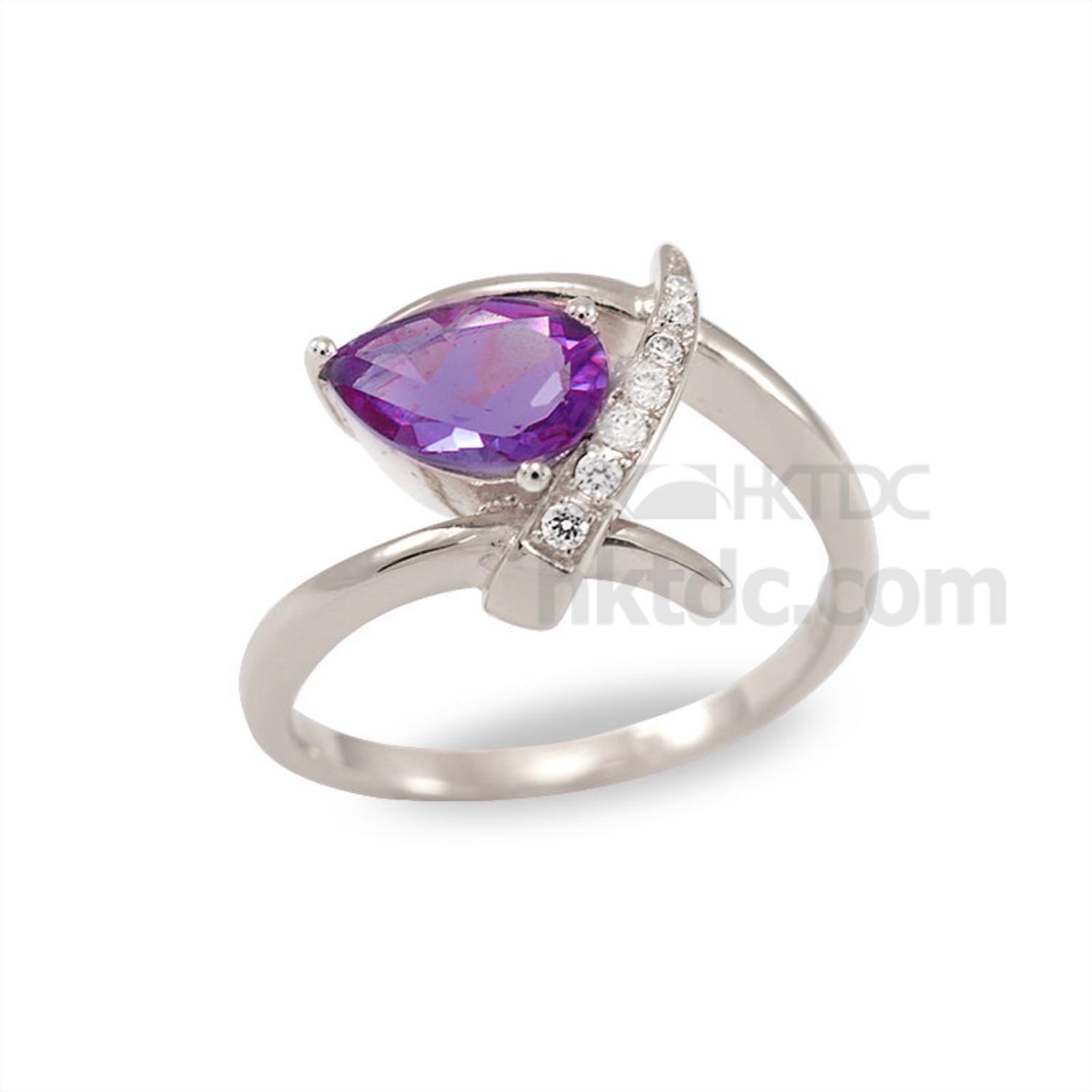 Sterling silver ring with gems stone Amethyst and machine cut CZ rhodium plating