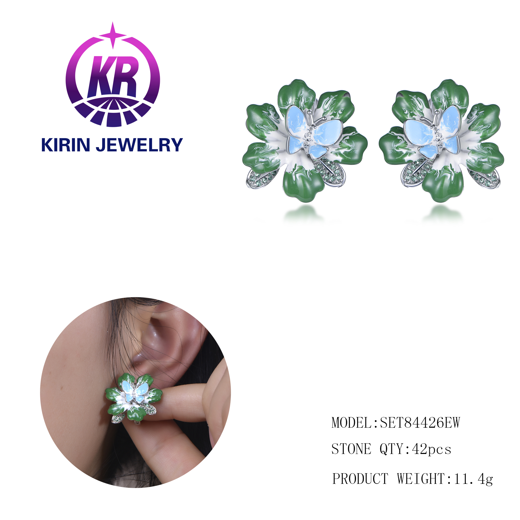 rhodium color plating 、blue &green enameble