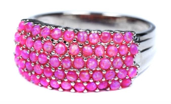 Different from the traditional design of opal, this synthetic opal ring marked a breakthrough in opal jewelry design and impress the jewelry lovers with its fanciful colorfulness and richer color pattern.