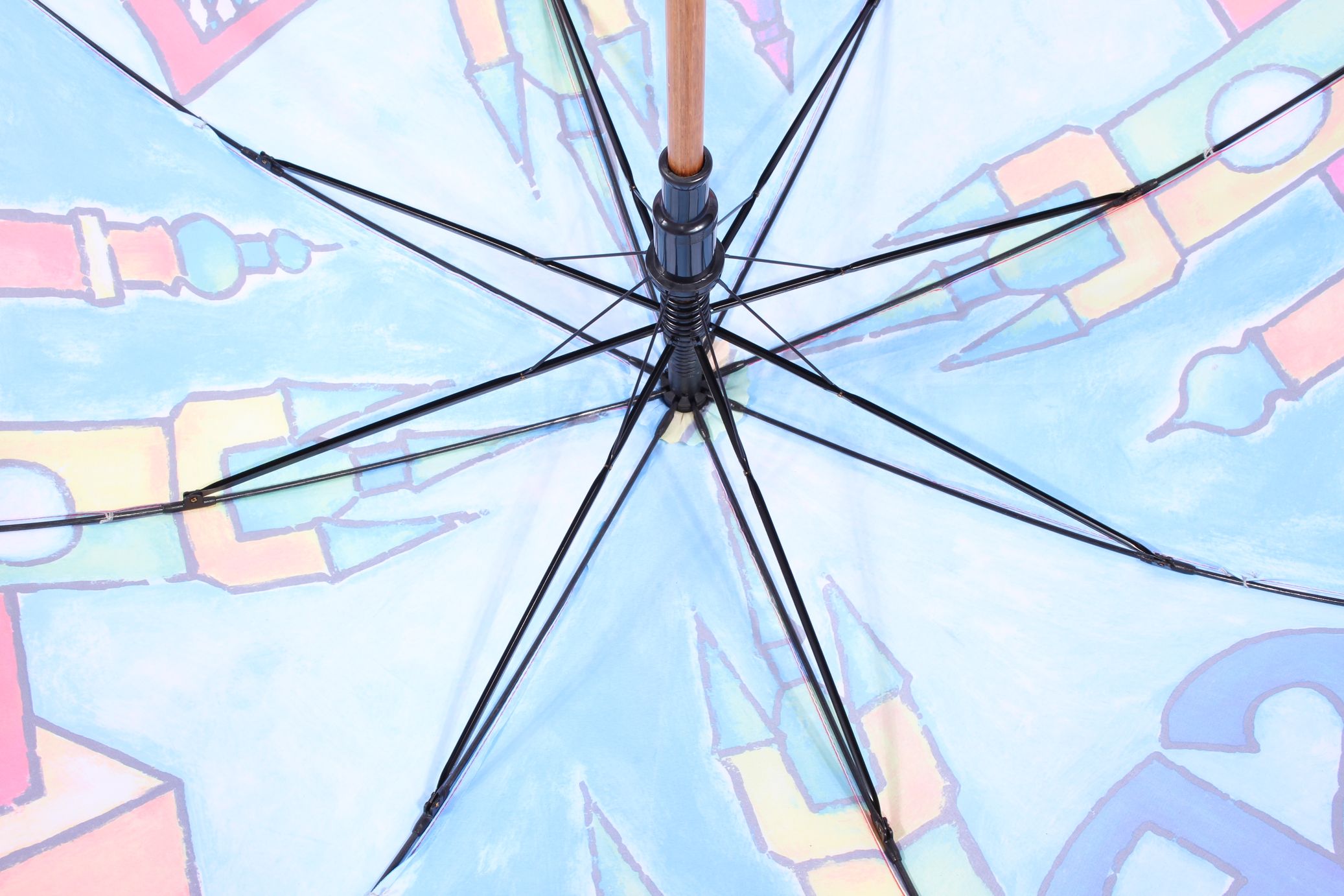 3) frame: Wood shaft frame with long fiberglass rib, Auto open Manual close stick umbrellas
