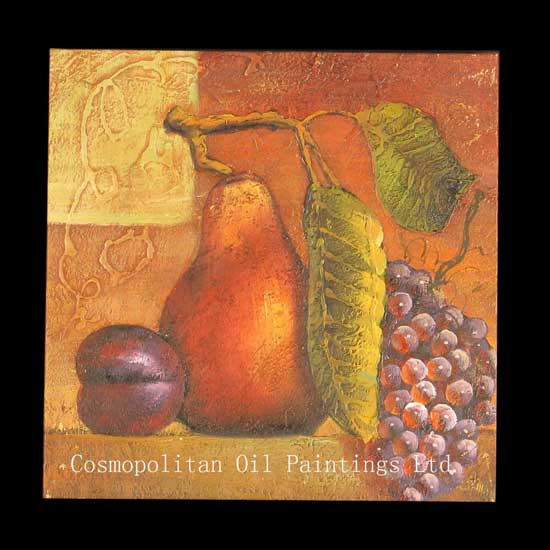 This fruit oil painting flaunts a use of rich and warm colors. Casual arrangement of fruits on a surface gives this painting a relaxed touch. This lovely painting is suitable for a range of venues such as restaurants and hotels.