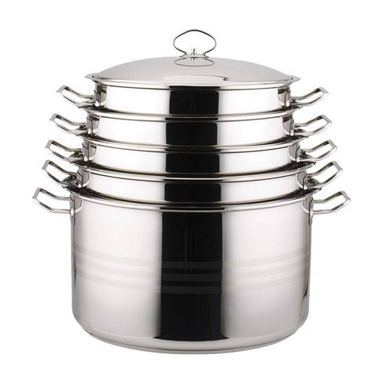 This is a stock pot set made of high quality stainless steel. There are five stock pots with various diameters to suit different needs. These stock pots are great for cooking soup and noodle.