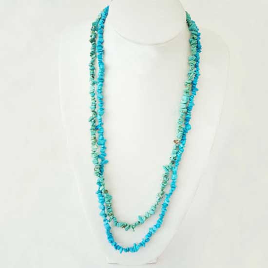 Adorn any summer looks with the featured necklaces. They are made of natural small stones and give a fresh feel. While one is longer and one is shorter, the necklaces can be worn separately or together for different looks.