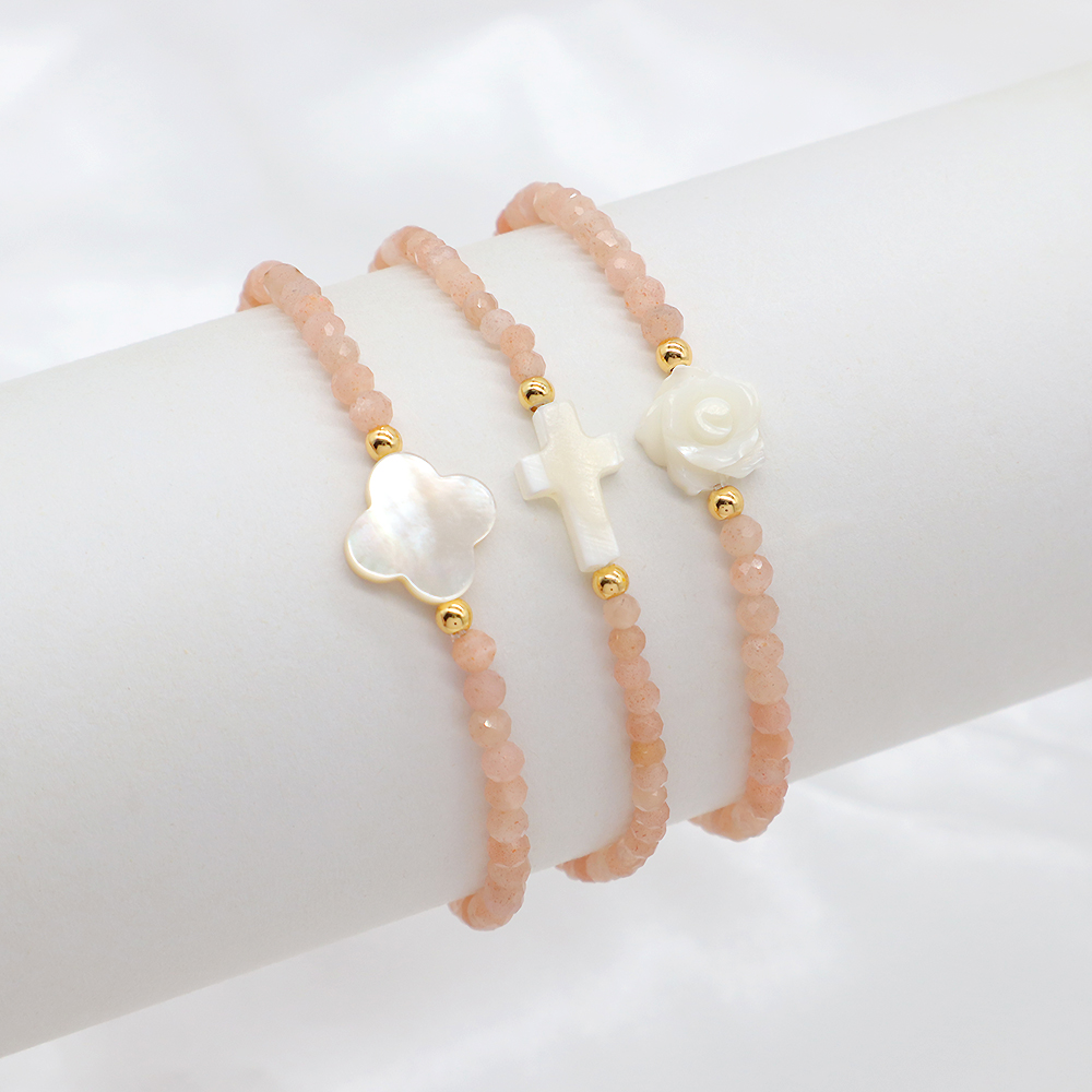 Material : Natural Stone Beads + brass or silver beads + Shell Charms