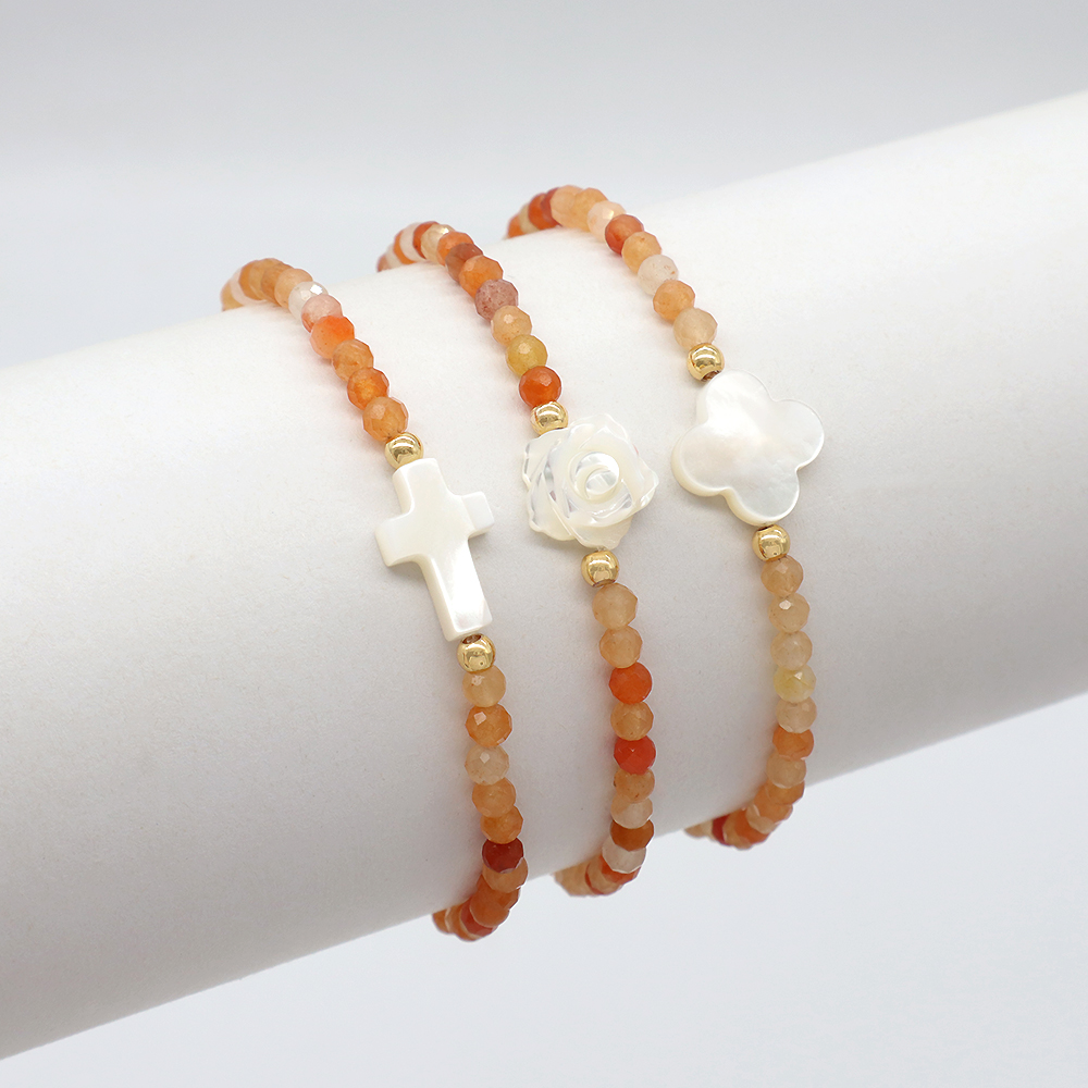 Material : Natural Stone Beads + brass or silver beads + Shell Charms