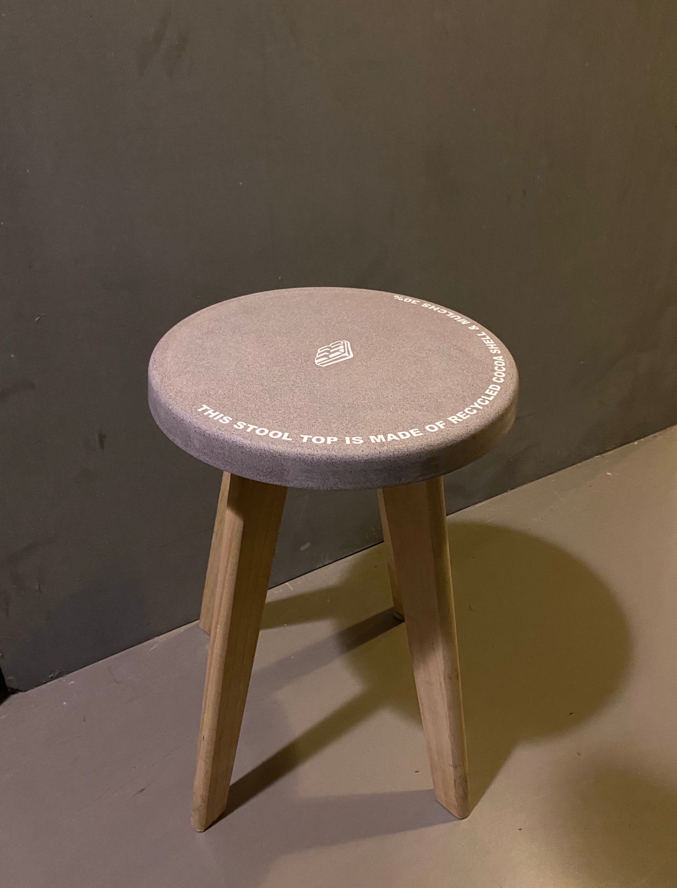 Stool top made of coffee grounds or other food wastes, e.g. cocoa mulch, egg shells, etc.