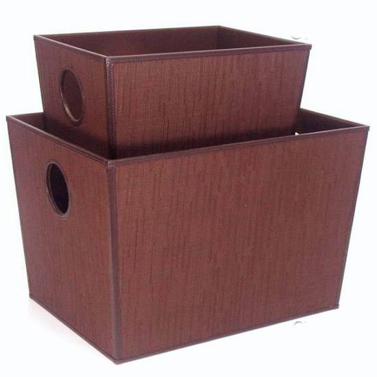 These are two storage boxes with a stylish and sophisticated design. This strong, durable and stackable storage boxes are finished in natural canvas. The box helps you organize items in your house, office and storage room.