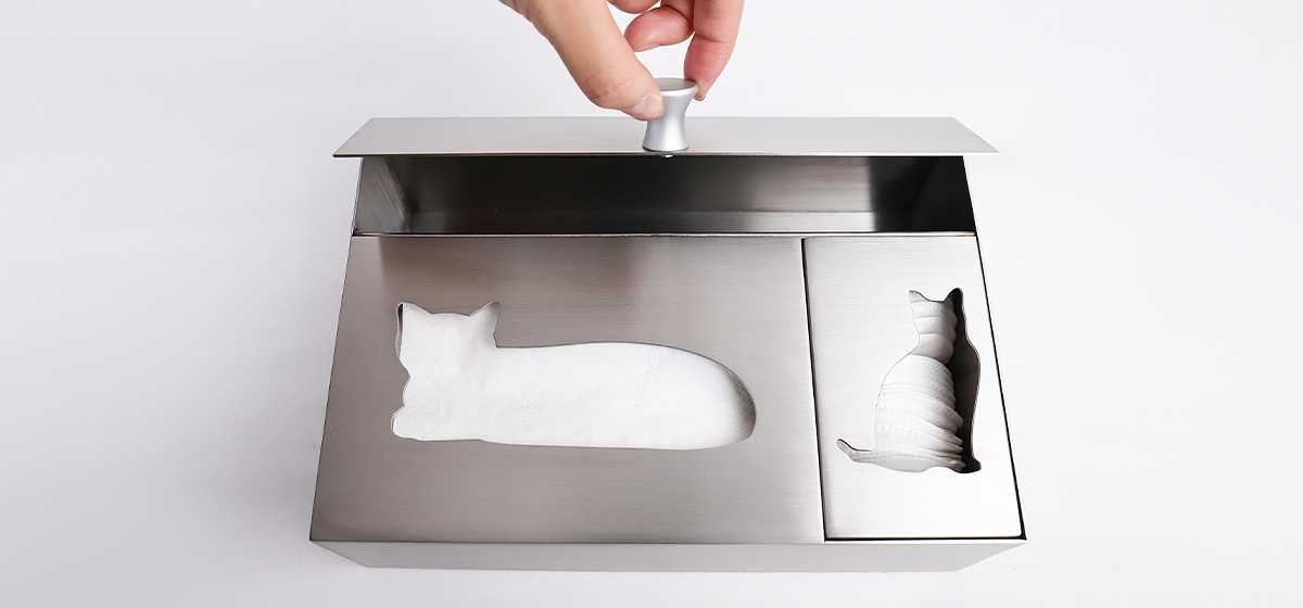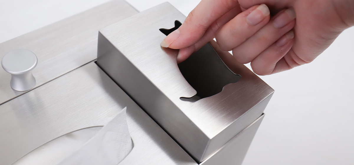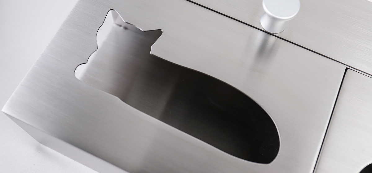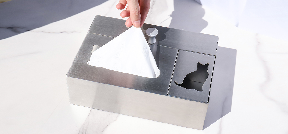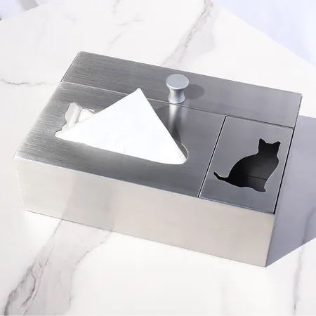 The storage box body ingeniously incorporates a cat silhouette hollow design, which instantly breaks the coldness of metal, adding a lively touch to the hotel's toiletries space.
