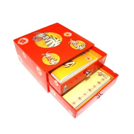 Keep your stationery items in the featured drawers and avoid a messy desk. There are two drawers and they can be easily pulled out. The box is red in color and there is a lovely zebra printed on it.