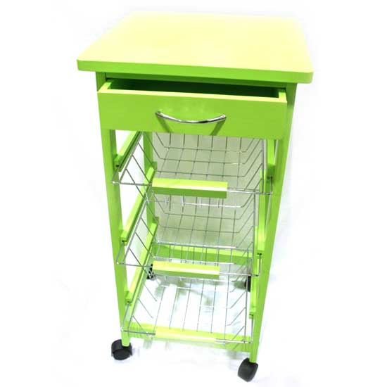 This pictured mobile storage rack with three metal trays and a drawer. The durable castors enable easy re-positioning at any corner of your house. The quality wood used promised guaranteed durability.