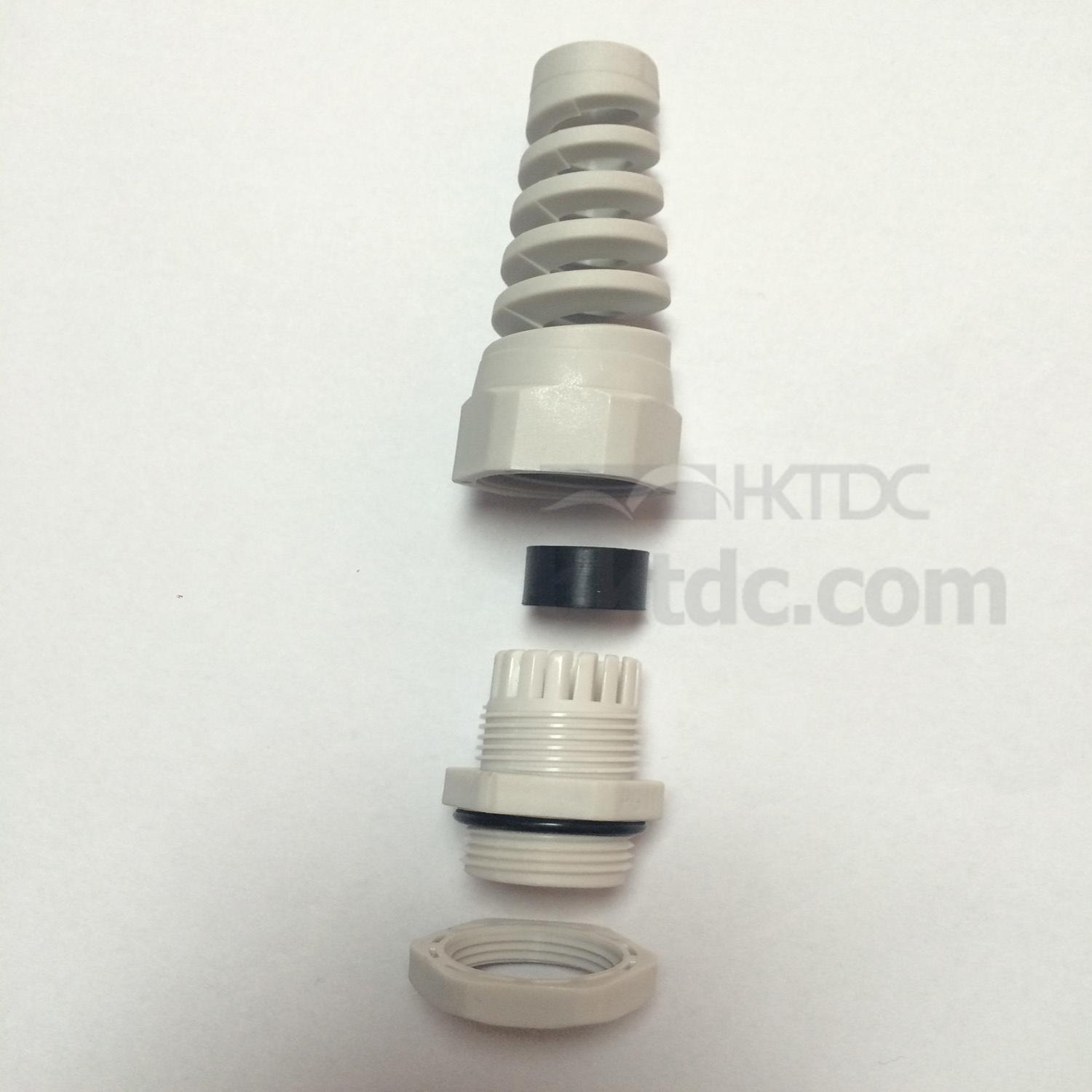 Material: parts A, C, E are made of UL approved nylon (PA66) and parts B and D are made of nitrile butadiene rubber (NBR).