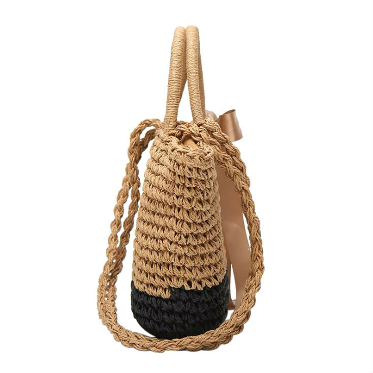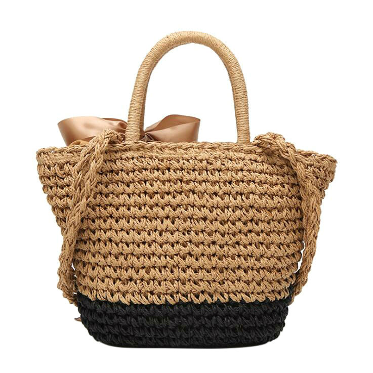 Hit the beach in absolute style with this flaring handbag. Capturing gazes with the beautiful plaiting of the contrasting straws, the gorgeous handbag is further sweetened up with a big ribbon tied neatly upon the rugged handle. Coming along with a roomy interior, it is spacious enough to accommodate all your personal belongings from cell phone to sunscreen.