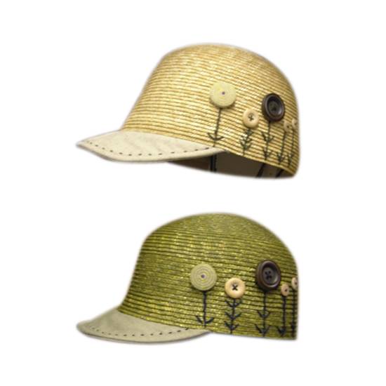 The featured item is a straw cap. The crown of the cap is made of straw while the peak is wrapped with cloth, giving it unique style.