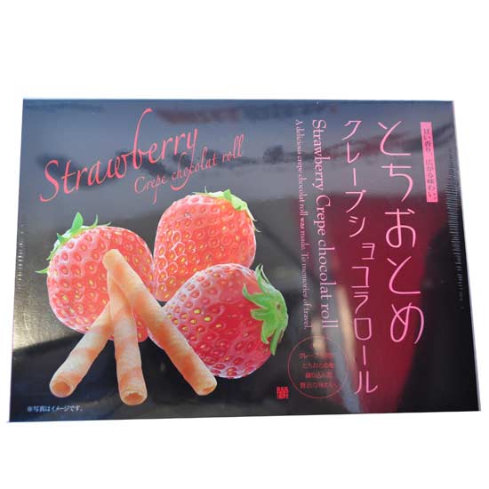 Enjoy this crepe roll for a wonderful snack time. The crispy and fragrant crepe comes with a strawberry flavor. Inside the roll are smooth and delicious chocolate fillings which make the roll especially pleasing to ladies.