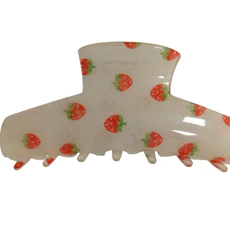 This hair clip is inspired by strawberries, which are not only delicious fruits but also symbols of freshness, sweetness, and vitality. The strawberry pattern on the clip brings a vibrant, summery feel and a touch of playfulness. It aims to appeal to those who love cute, fruit - themed accessories, or anyone looking to add a fun, colorful element to their hairstyle, evoking a sense of joy and youthful charm.