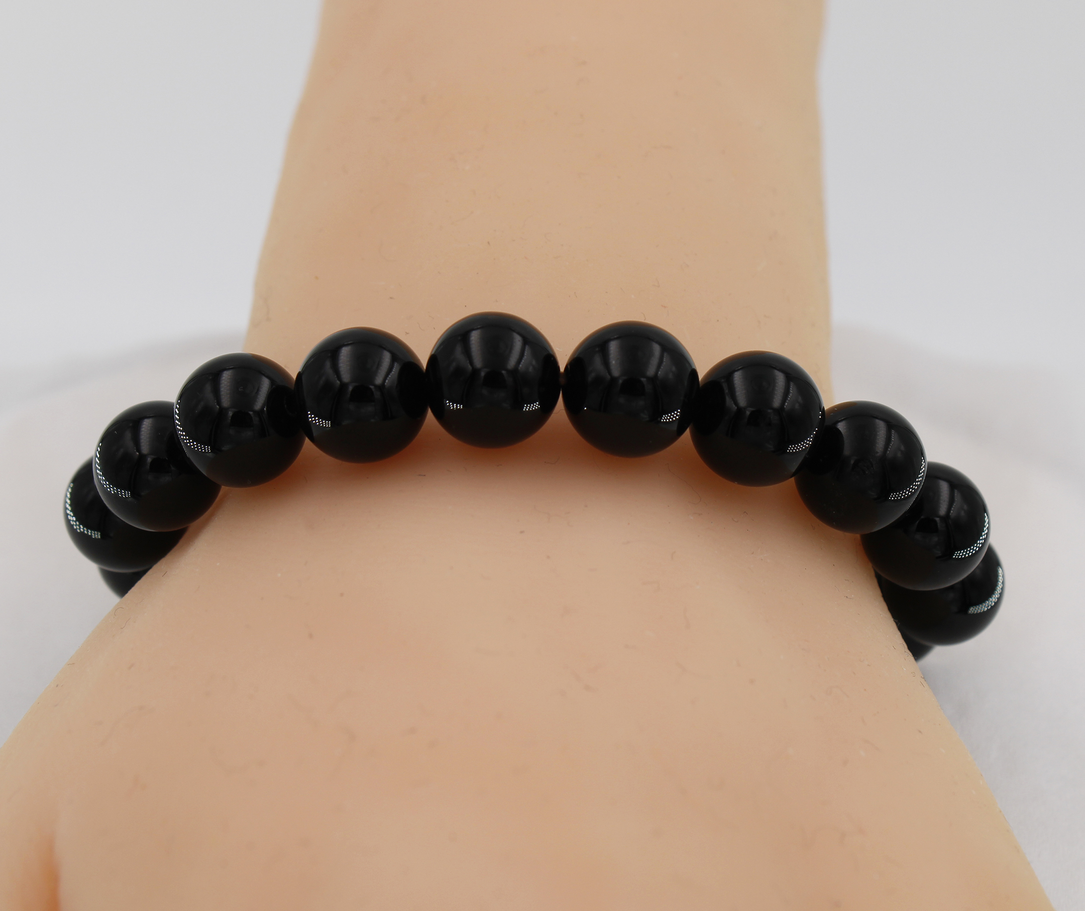 • Stretched bracelet, 18cm long, 10mm round black agate bracelet.