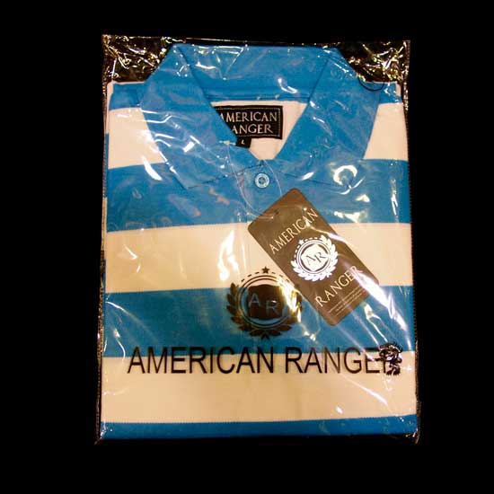 This 100% poly polo shirt flaunts blue and white hued stripes offering a classic style. The two 4-hole buttons is nicely stitched on the placket. This fashionable polo shirt makes you look more energetic.
