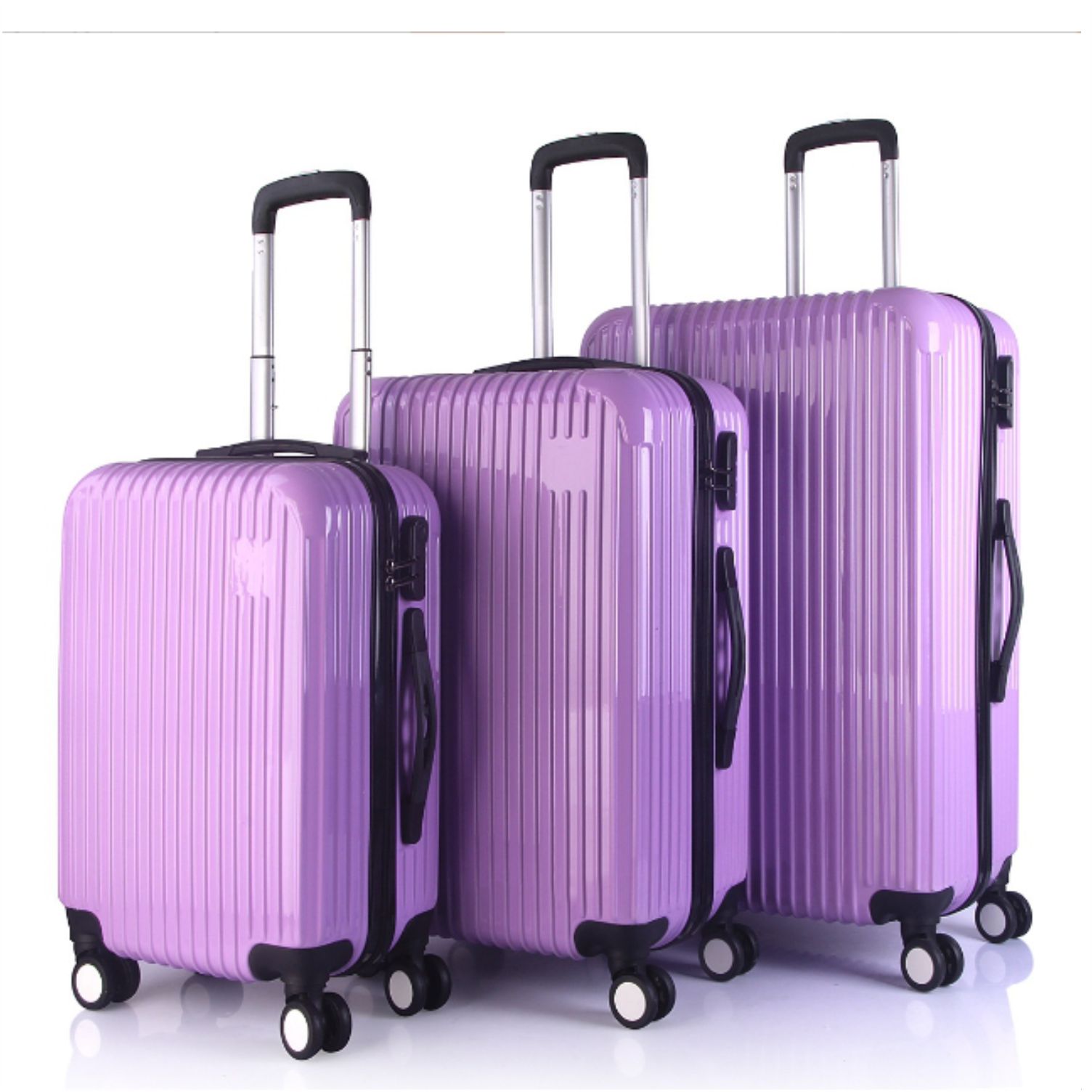 Product name: Charming purple static surface pinstripe trolley case ABS three-piece suitcase