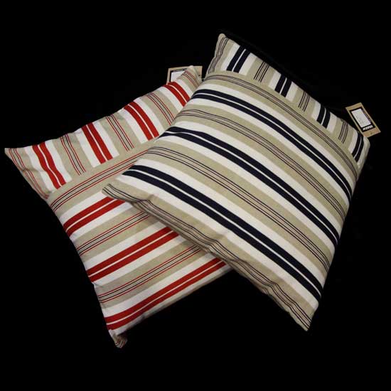 Shown here is a cushion coming with a soft texture. The shell features yarn-dyed striped patterns in a cool color combination. The stylish design goes well with various designs of interior settings.