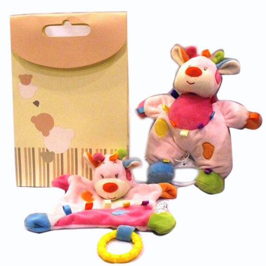 This stuffed deer set comes with a stuffed toy deer and a baby toy. This baby toy set has distinctive colors attracting babies' eyes easily. This gift set is the right choice of baby shower sets.