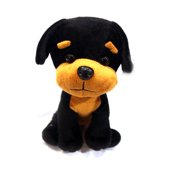 This stuffed Rottweiler puppy appeals to children with its innocent, adorable appearance. The soft shell and stuffing make this toy puppy pleasant to touch and comfortable to hold. This stuffed Rottweiler puppy is a child's best company in bed.