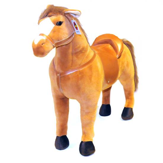 This large stuffed toy pony comes with a brown saddle. It is designed with life like details and in a standing posture. Moreover, it is available in different sizes.