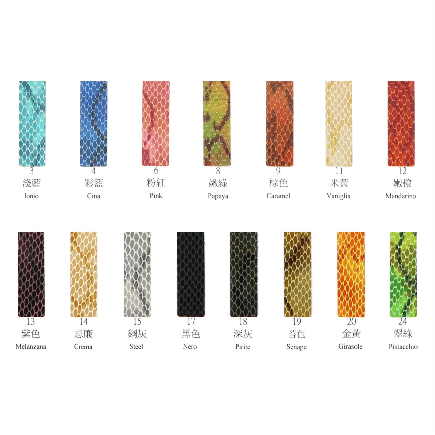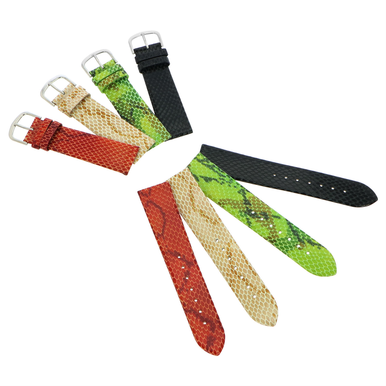 Crafted in top-quality calf leather, these leather watch straps are the ones you need to complete your timepiece designs. These watch straps are designed with semi-turn edge and come in a flat style with no stitching for a modern and sleek appeal. Embossed on the premium quality straps are snakeskin patterns that would bring your watches a luxurious and enchanting aura. Let your new watch designs stay on top of the animal print revival with these snakeskin watch straps.