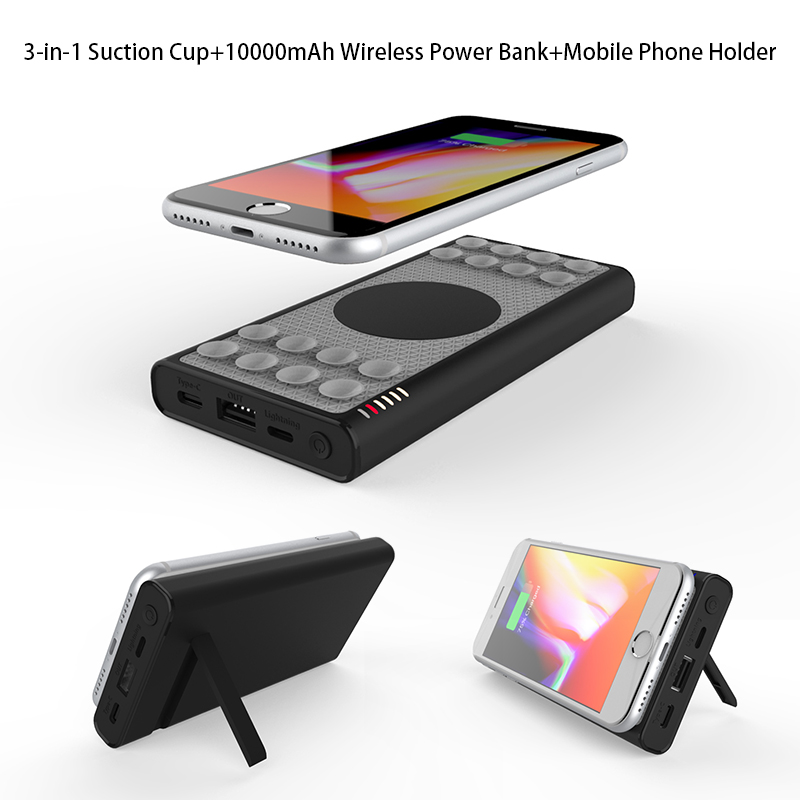 Suction Cup 10000mah Wireless Power Bank with Phone Holder