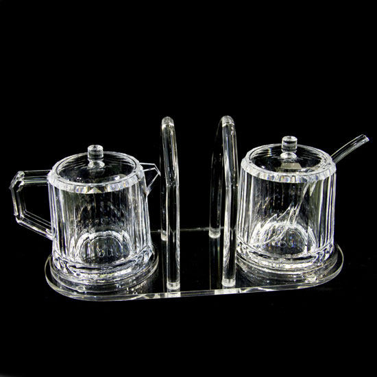 Featured here is a sugar and creamer set with an aesthetically pleasing design. The quality acrylic construction promises lasting durability. This sugar and creamer set makes the perfect accompaniment to any tea or coffee set.