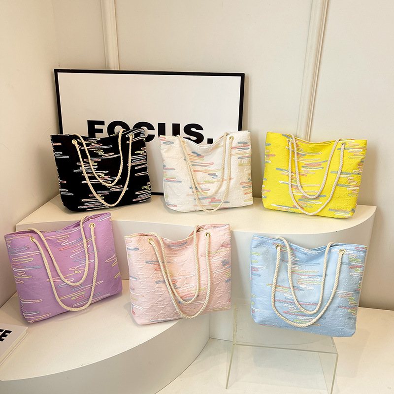 Summer 2025 new style Korean fashion tote bag with large capacity for school and commuting, featuring trendy and personalized design in women's striped pattern.