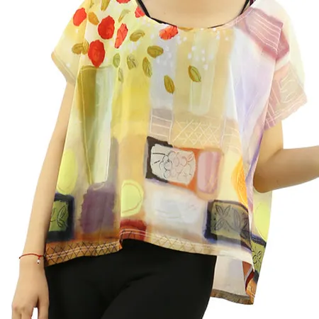 Summer Chiffon Stripe Soft 2 Sets Digital Print T-shirt