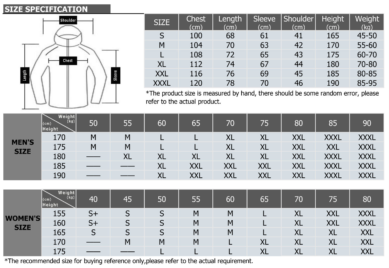 S, M, L, XL, XXL, XXXL, XXXXL