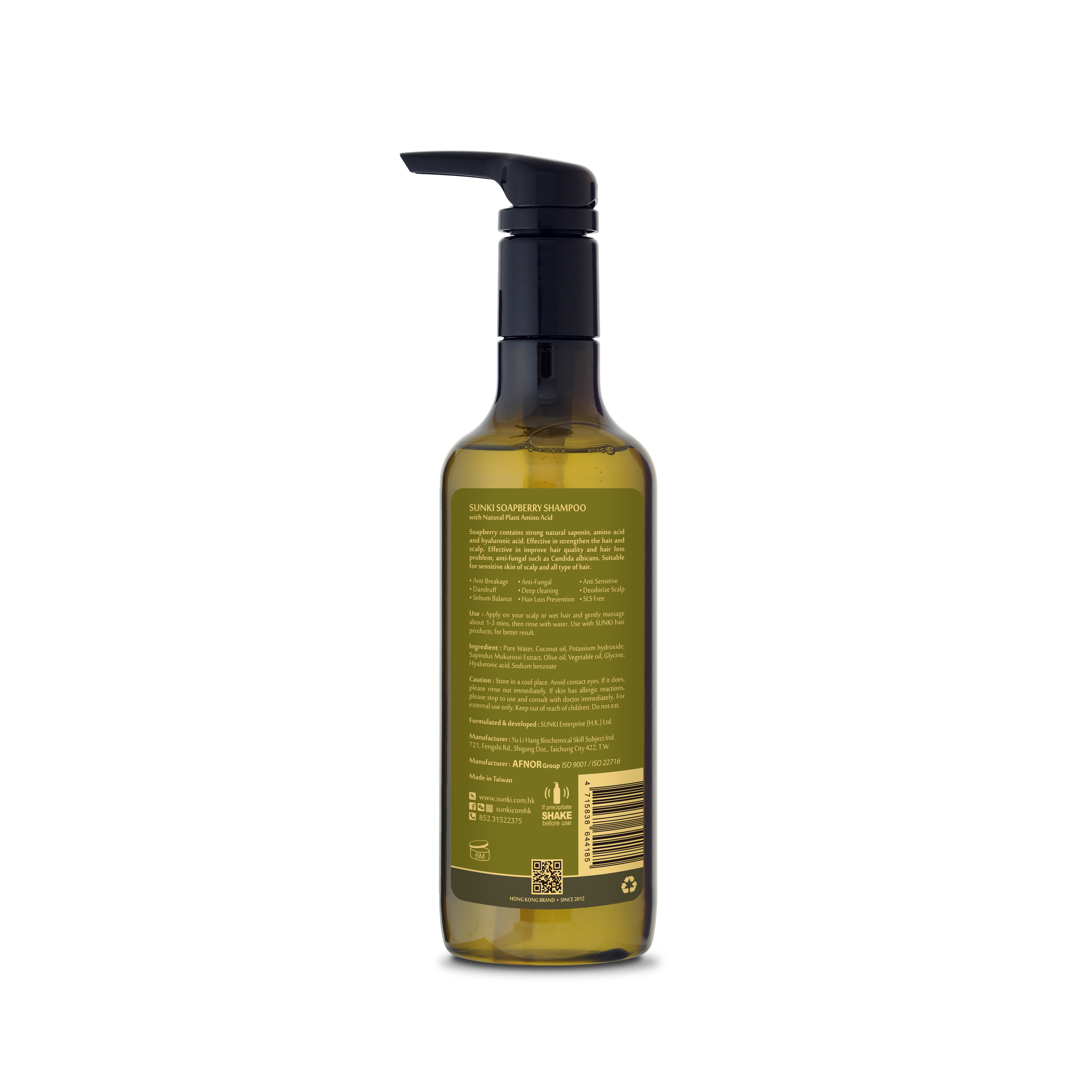 Main ingredients: pure water, coconut oil, soapberry extract, olive oil, plant-based amino acids and hyaluronic acid.
