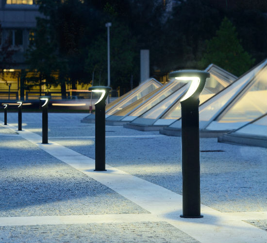 Sunny, outdoor lamp in die-cast/cast/extruded alluminium and sandblasted diffuser, proposed in LED 12W and Fluorescent bulbs.