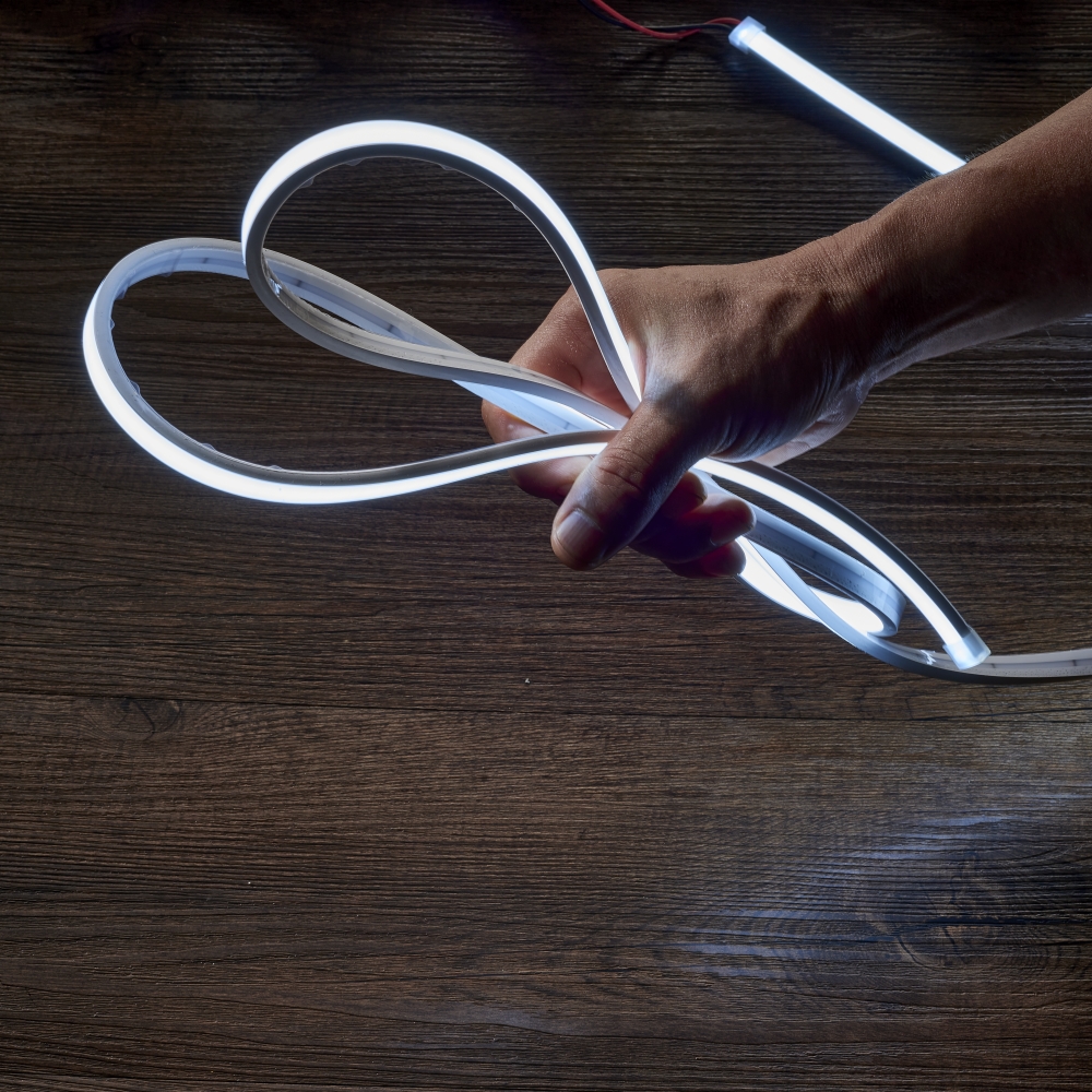 -Super slim size with flat shape, dot free, combination of the strip light and neon flex.