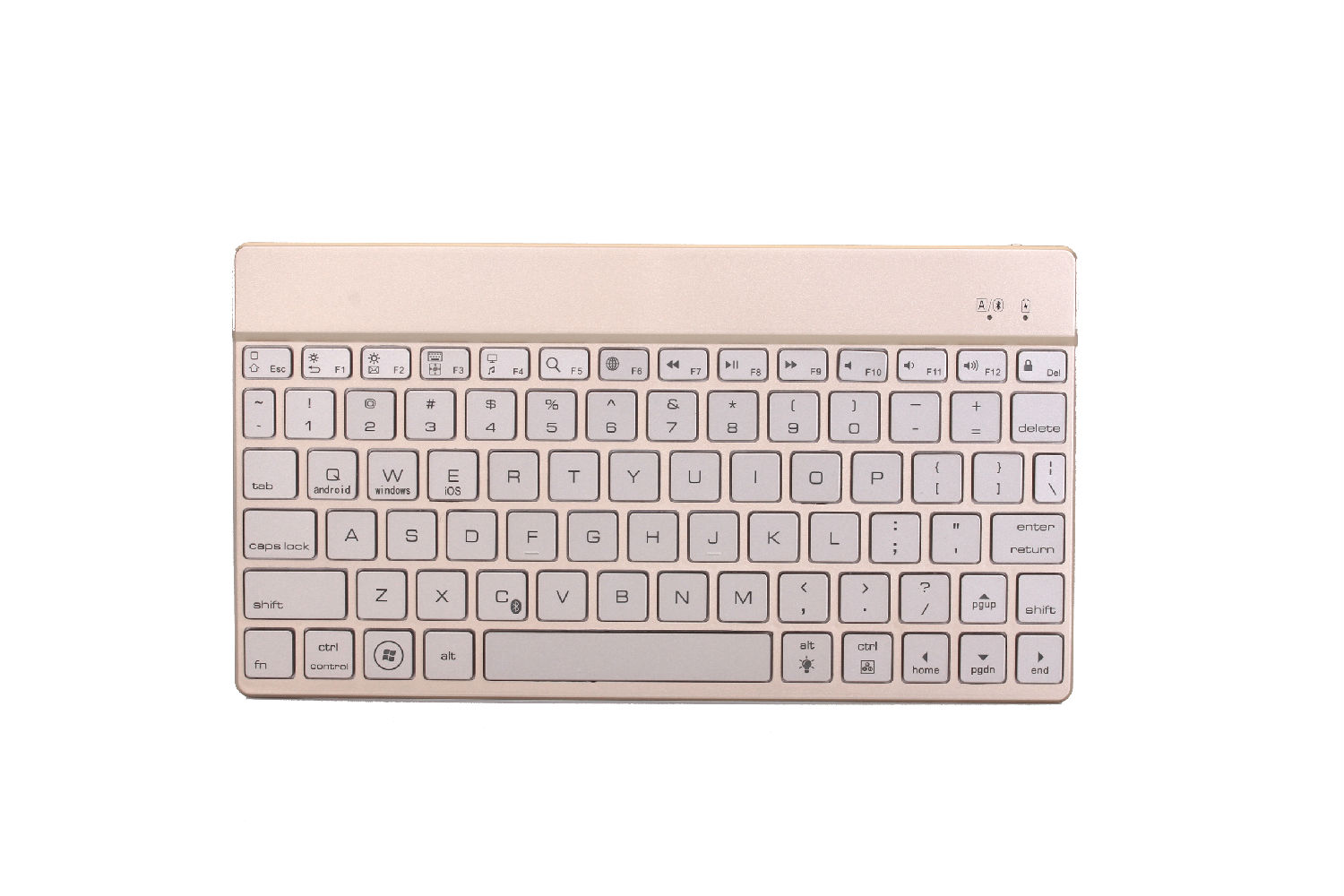 Model: F16S Product name: Elegant Detachable Bluetooth keyboard for iPad Air 2 Applicable models: iPad Air 2 Platform: IOS system,compatible with Android and Windows systems Function: Keyboard + Protective + Support Product features: 1.0 Built-in slimmest wireless Bluetooth chip. 2.0 Automatic connecting(without entering password). 3.0 Support 7 color backlight ,can freely adjust brightness. 4.0 Built-in Rechargeable long lasting lithium battery. 5.0 Special shortcut keys bring much convenience. 6.0 Quiet keystrokes,waterproof and dust-proof. 7.0 Energy saving,intelligent sleep mode. 8.0 Multi-role detachable keyboard for different device. Connection: Bluetooth 3.0 wireless technology Keyboard color: Black/Golden/White Leather case color: Black/Golden/Green/Blue/Pink Keyboard: 78-key layout (6 rows) Material: Aluminum alloy, ABS Key Type: Scissor-Switch Key Life: 5 million stroke Working Range: 10 meters Battery: Built-in lithium Rechargeable Battery(400mAh) Working Time: 100 hours (continuous use)/ 30 days (standby mode) Keyboard Size: 237x129x4mm Keyboard case Size: 244x183x13 mm Keyboard N.W: 252g Keybaord G.W: 551g Packing dimension: 280x195x28mm Packing weight: 797g Certifications: CE,ROHS Packing content: Bluetooth keyboard x1 Protective case x1 USB charging cable x1 User guide x1
