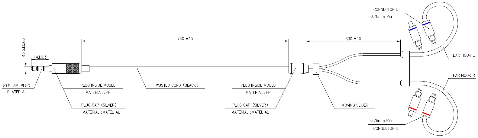 • Conductor: Bare Copper, 24-30AWG TC/BC/CCS, Gold plated