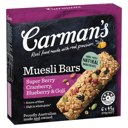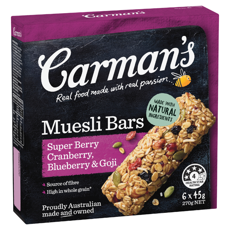 Made with crispy baked Australian whole grain oats, mixed crunchy nuts, seeds, juicy cranberries, blueberries and goji berries.