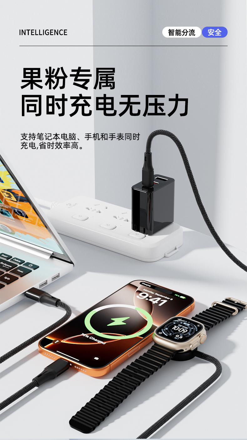Super - fast charging multi - functional mobile phone data cable wireless charging for watches