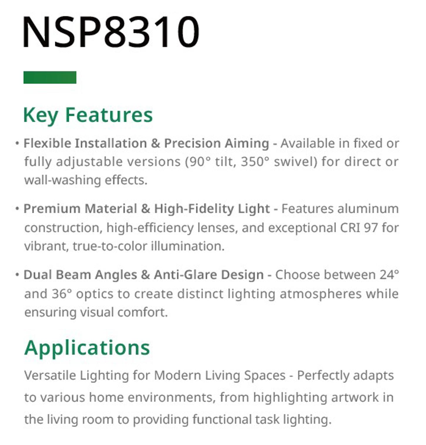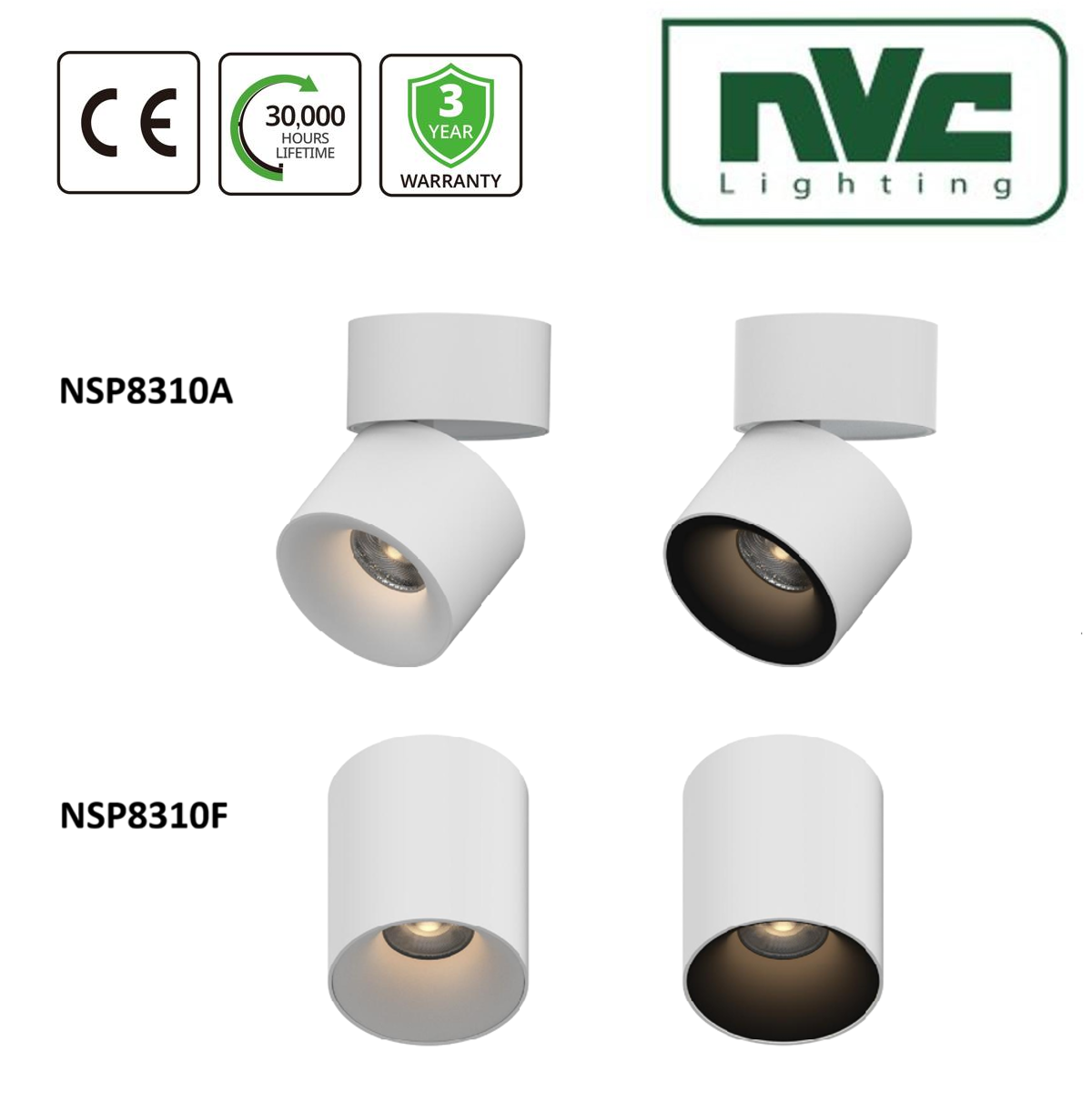 Surface Mount Spot Light, fixed, Adjustable angle, CRI97, CE, NVC, NSP8310A / NSP8310F