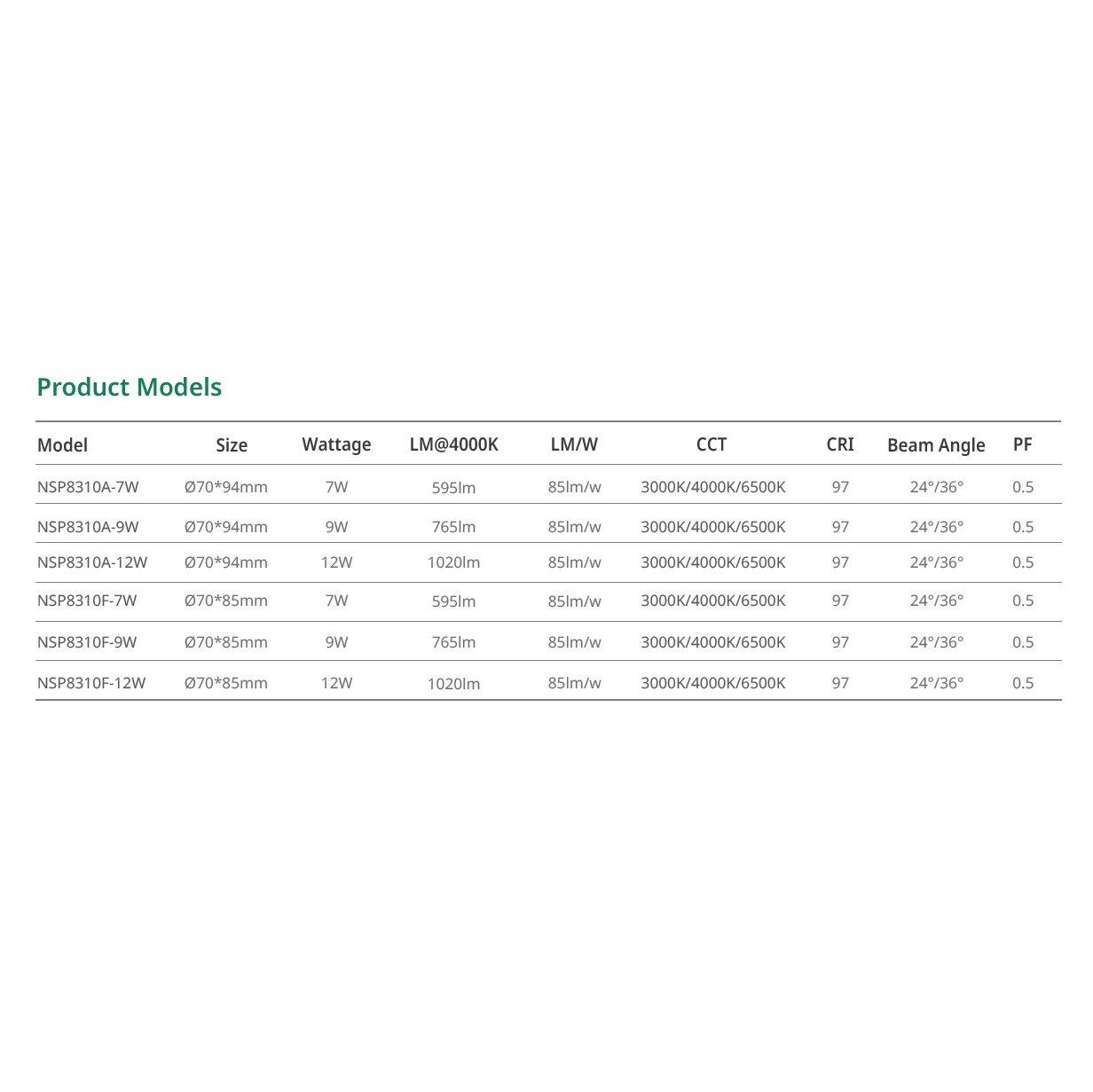 7W, 9W, 12W,