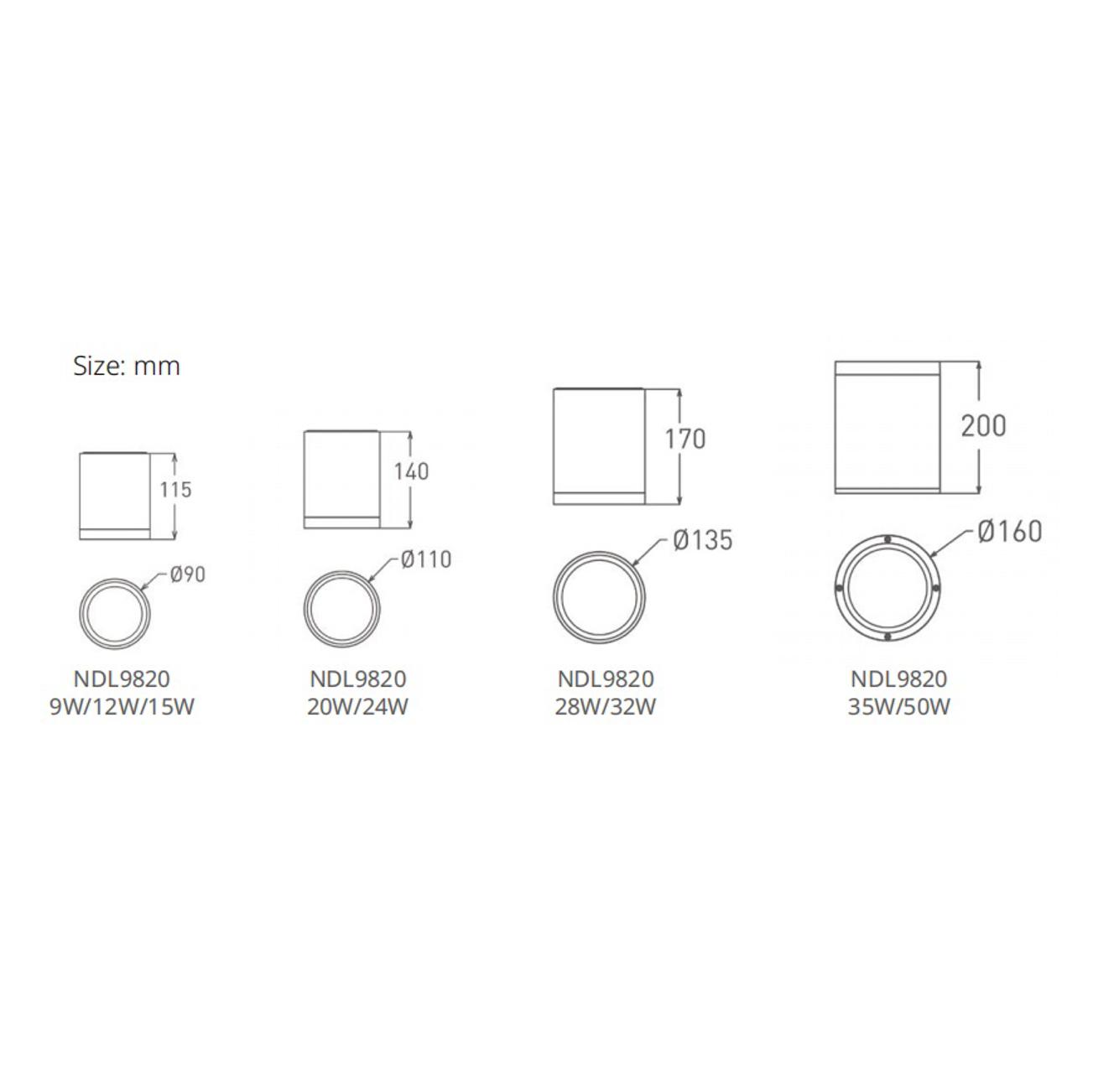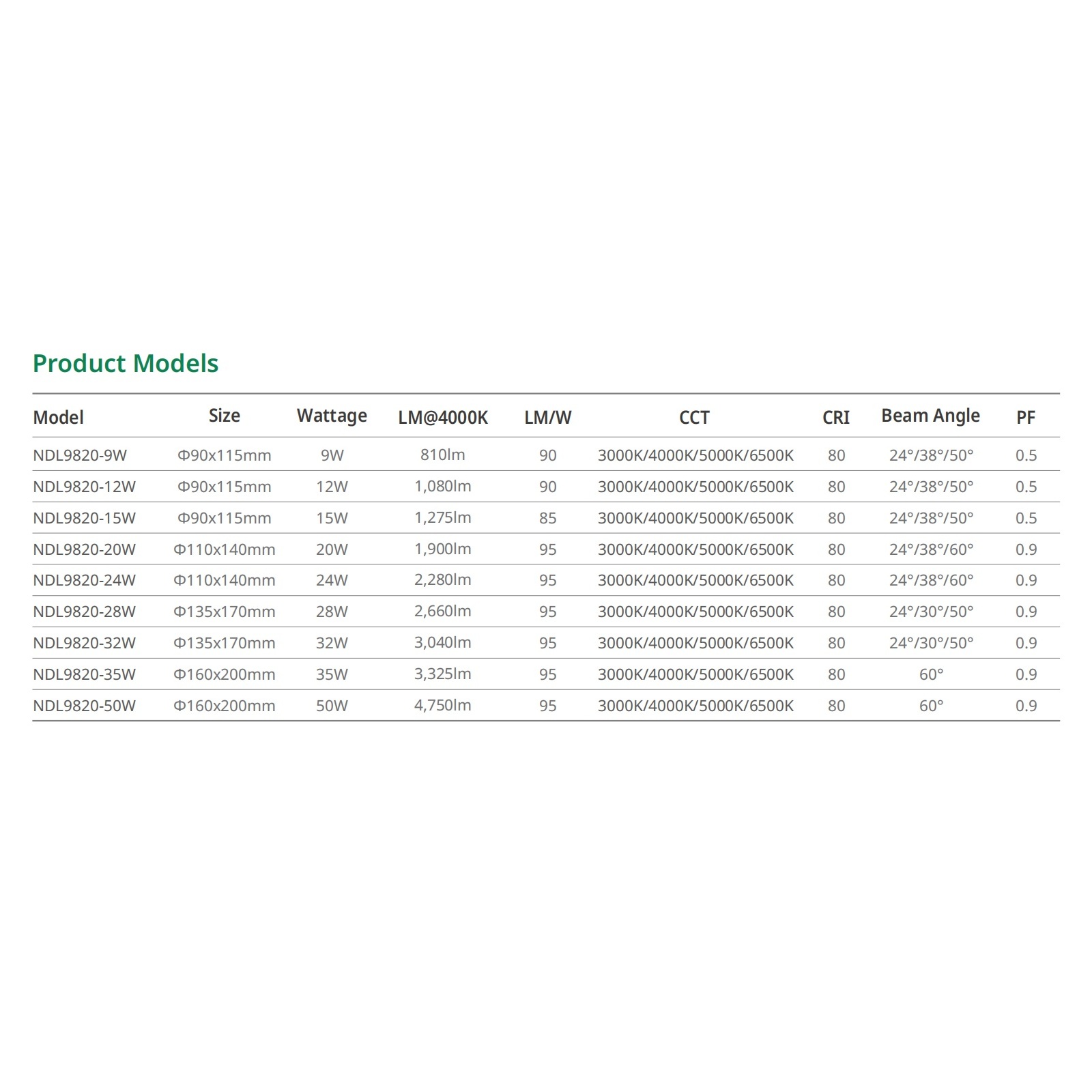 9W, 12W, 15W, 20W, 24W, 28W, 32W, 35W, 50W