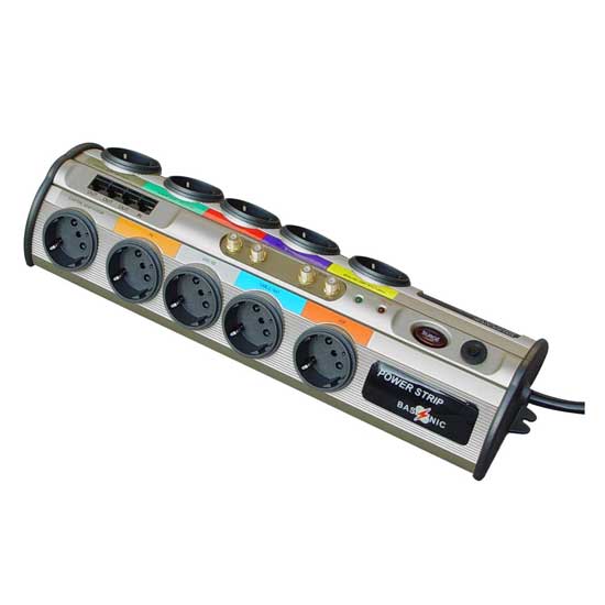 Showcased is a surge protector with ten sockets for different types of electrical appliances. The durable plastic construction is built to prevent short circuits and enhances high safety. This surge protector can be customized to meet requirements from different countries.