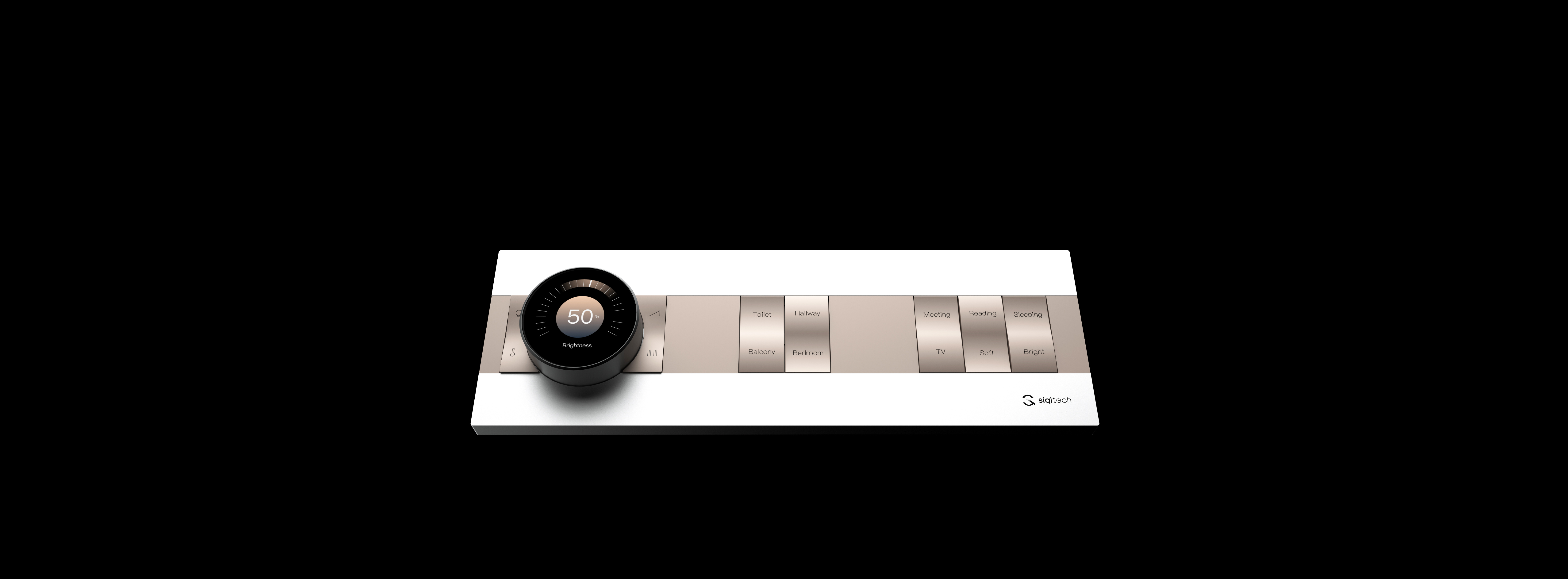 Surge series elegant and dynamic. The decorative panel in the middle extends the visual width, creating a boundless realm. The button design cleverly combines seawater ripples and ergonomics, presenting a romantic “visual illusion” in different light, flowing freely like waves. The knob is used to control volume, temperature, brightness, curtain opening and closing, etc., allowing space to encounter more inspiration.