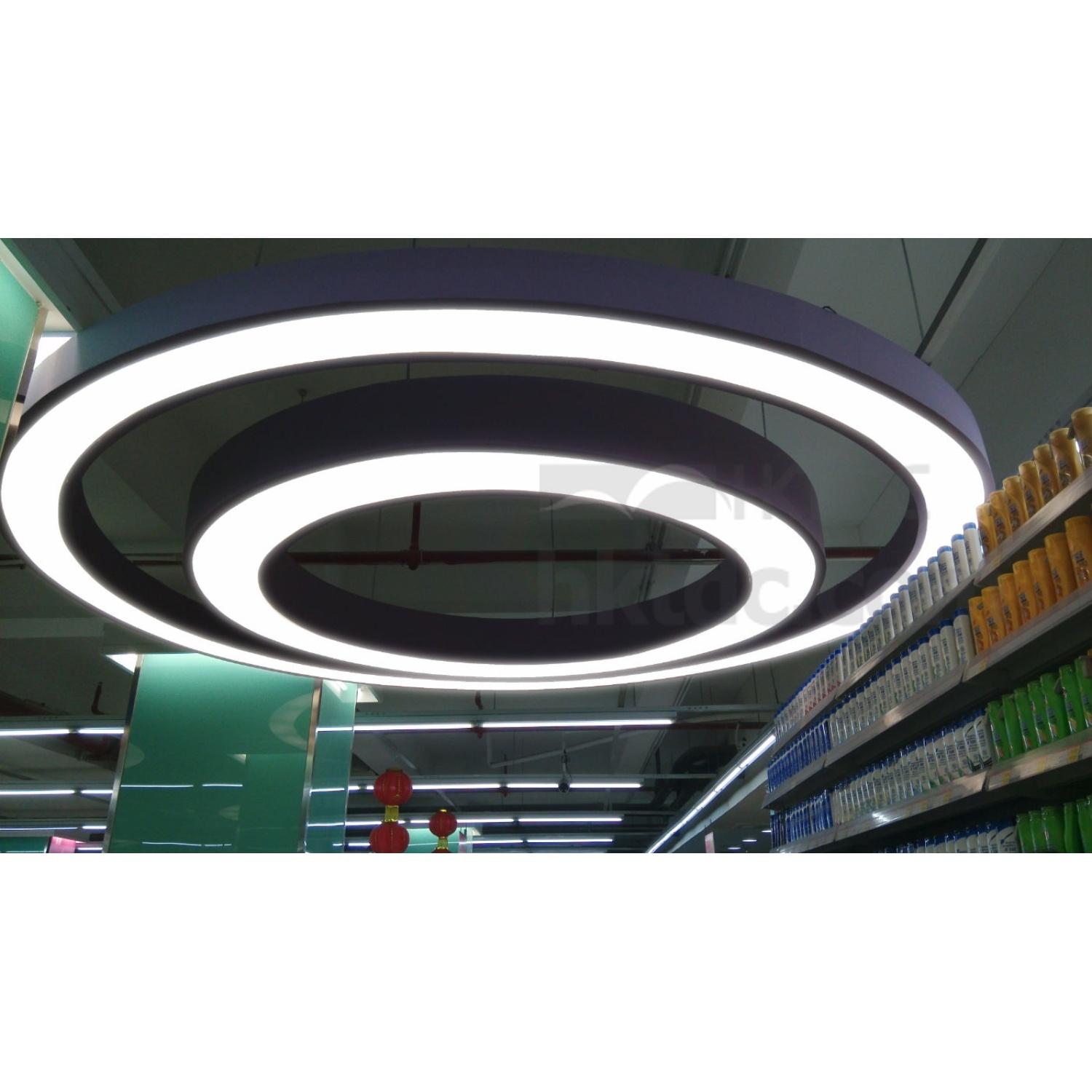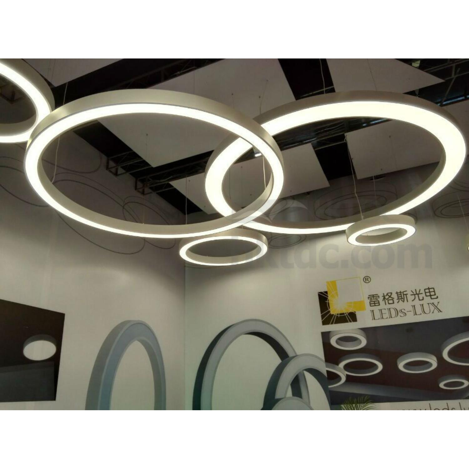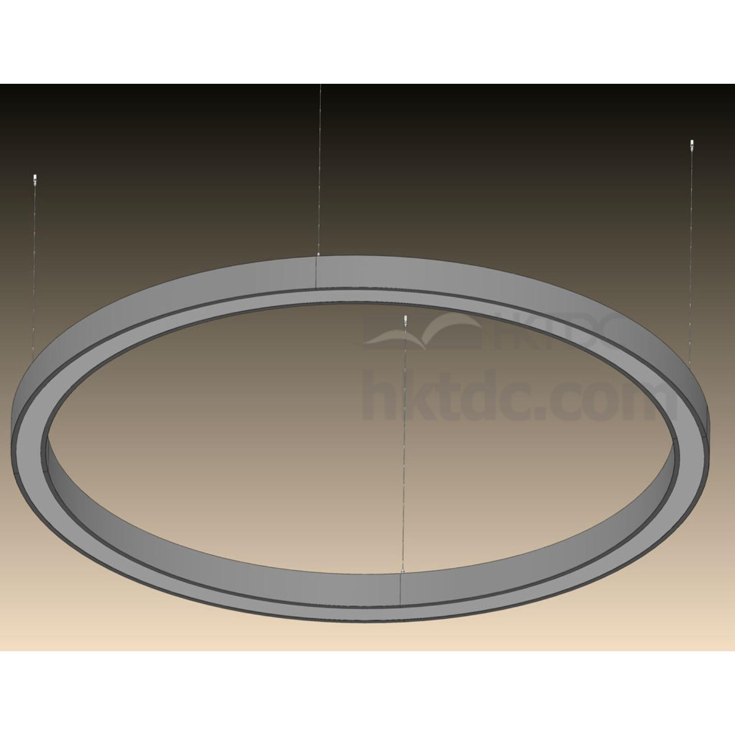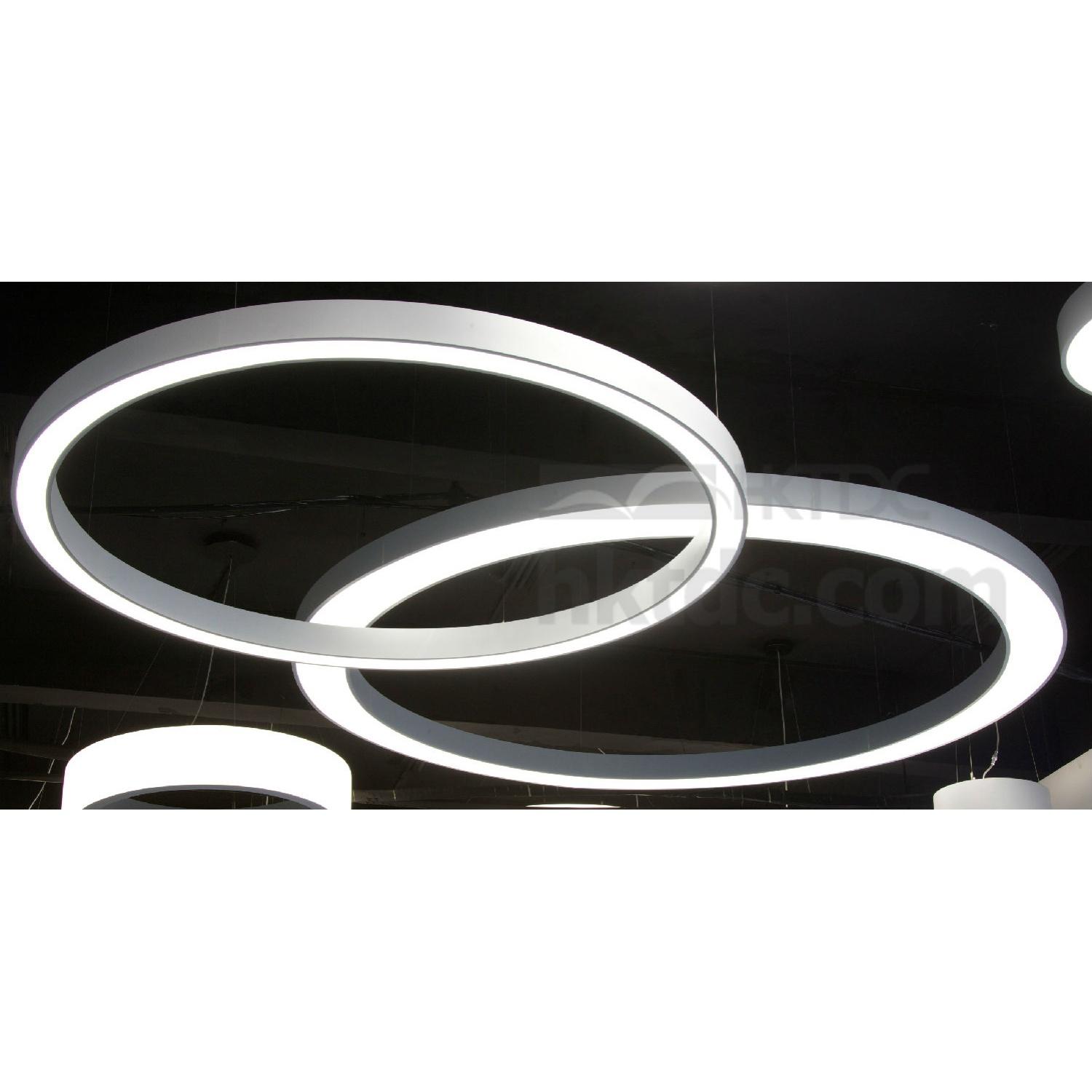Super Size Suspension Linear LED Circular Ring Light, Type Size Ø200cm, Construction Size Ø200/Ø180X105mm, Rated Input: 90-250V~, 50/60Hz, Total Output Power: 144.0W, 360pcs of Samsung SMD 0.2~0.5W LED work at 0.4W, Kelvin: 5,400 to 7,000K (Pure White), 4,000 to 4,500K (Daylight White) or 2,700 to 3,500K (Warm White) by order, calculated total 15,552lm Max., PMMA Cover, Aluminium Rolling Frame. 2X90W Current Constant Power Supply, 4 segment assemblied connection, Ceiling Mounted Set, 4X5m or 4X8m Stainness Steel Wires for pendant installation included. 4 segments and assemblied by end user to save package size and shipping cost.