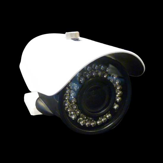 Displayed is a surveillance camera that comes in a space-saving cylindrical design. Using bullet-type lenses, this camera is sensitive and can efficiently record movements. This high quality surveillance camera is easy to install and maintain.